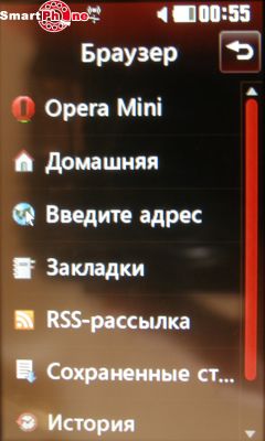 Приложение «Браузер» содержит в себе браузер Opera mini, а также менеджер RSS-рассылки. Кроме того, в этом пакете находятся все настройки и режимы просмотра страниц.
