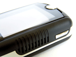 Чёрный корпус, белые клавиши с очень оригинальным профилем (волнообразный изгиб улучшает эргономику набора сообщений и работы с цифровой клавиатурой), металлическая полоска-обод по периметру телефона, отверстия динамиков по бокам и боковые кнопки – вот особенности, которые сразу бросаются в глаза. Обод добавляет солидности, а также, по нашему мнению, может послужить дополнительным ребром жёсткости. Телефон сделан безо всяких изысков вроде выступающих за габариты ровного «кирпичика» камер и дополнительных органов управления, что существенно влияет на эргономику.