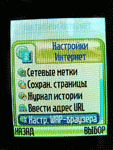 Открыв аппарат, видим две совершенно ровных поверхности. Экран – стандартный для телефонов этой линейки, достаточно яркий и разборчивый. В детализацию косвенно добавляется ещё и то, что оформление дисплея – в тёмных тонах (то есть, вокруг матрицы чёрное полированное стекло), из-за этого контраст кажется более сильным, да и на солнце больших бликов не замечается. Та половина раскладушки, на которой расположена клавиатура, очень оригинальна и интересна. Представьте себе сплошную полированную поверхность, на которой нанесены символы, соответствующие цифрам и действиям. Эти кнопки ничем, кроме небольших резиновых полосочек-вставочек, не разграничены между собой. Шарма добавляет ещё то, что эти резиновые направляющие не прямые, а изогнутые – создаётся впечатление, что клавиши расположены не на одной линии, а под изгибом. Несмотря на это, набирать сообщение или номер нетрудно – сенсорные кнопки хорошо и чётко нажимаются, хоть ход их предельно мал. Над цифровой клавиатурой – управление телефоном. Это кнопки подъёма/отбоя звонка, быстрый доступ к сообщениям, веб-браузеру, а также две контекстные кнопки и одна – главный вход в меню. Это всё расположено вокруг джойстика-кольца с центральной кнопкой подтверждения внутри. Вот этот орган управления нам не понравился: джойстик маленький, нажатия на него должны быть точными, чёткими и даже где-то сильными, центральная кнопка очень мала даже для женских пальцев. В общем, к нему нужно приноровиться.