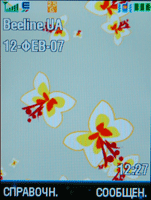 ЭкранВот здесь начинается самая интересная часть телефона. Но все по порядку. В телефоне установлено два экрана – внешний и внутренний. Он имеет размеры такие же, как и основной экран телефонов пару лет назад, а именно 120х160 точек. Выполнен он по технологии TFT и отображает до 65 000 цветов. Другое дело основной экран. Сказать, что дисплей аппарата превосходный – это ничего не сказать. Он просто идеальный. Выполнен он по уже отработанной технологии TFT со способностью отображать до 262 000 оттенков. Но при этом его линейные размеры составляют 2.1 дюйм по диагонали, куда поместилось 240х320 точек. Также абсолютно отсутствует проблема малых углов обзора. Изображение на дисплее хорошо видно под любым углом. Это, правда, минус, так как все смогут прочитать сердечные SMS :). Из настроек пользователю доступно изменение яркости и времени работы подсветки. Установка обоев рабочего стола как отдельная опция отсутствует, но достаточно выбрать желаемую картинку и нажать «применить как». Также в телефоне присутствует возможность установить свою тему оформления, правда придется сначала ее скачать, так как создать по образцу и подобию не получится, ведь темы заблокированы для передачи.