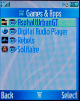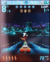Игры и приложения:В телефоне изначально предустановленны 3 игры и Java mp 3 плеер. Первая игра представляет собой гоночную аркаду, с множеством всевозможных бонусов и будет очень интересной многим. Вторая – классическая звездная стрелялка, а третья – карточный пасьянс. Java мр3 плеер оказался достаточно удобным, и он вполне может заменить имеющийся встроенный. Единственное, что он не может сворачиваться в фон, а только останавливается, как и все остальные приложения, и начинает играть при его активизации.