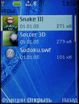 К сожалению, платформа S40 не поддерживает установку приложений от сторонних производителей и такого обилия программ, как для s60 или s80 вы не найдете. Этот недостаток частично компенсируется поддержкой J2ME и Flash. В Symbian-аппаратах управление приложениями и мидлетами в обязательном порядке осуществляется с помощью специального менеджера приложений. Nokia 6131, к счастью, лишен этого «пережитка» - удаление и контроль программ осуществляется непосредственно в меню «Приложения». В стандартном комплекте установленных программ – три игры: трехмерная «змейка», очень неплохой симулятор футбола и флэш-головоломка «судоку». Ощутимых «тормозов» при запуске и работе с приложениями, несмотря даже на весьма продвинутую графику абсолютно не ощущалось. Внутренней памяти телефона – всего 11 МБ, но для мобильника в общем-то вполне достаточно (имеется в виду для нужд мидлетов, для активной работы с мультимедиа придется докупать карточку).