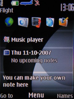 МенюNokia 6500 classic построен на платформе Series 40 5th edition. Вы спросите, почему сразу пятое издание после третьего? Возможно, это связано с тем, что в странах Азии 4 – несчастливое число. Не акцентируя внимания на числах, скажем только что в пятом издании функции управления телефоном остались почти теми же. Модель 6500 classic предлагает большое количество настраиваемых опций, что в некоторой степени усложняет структуру меню и навигацию. ![]() В режиме ожидания на фоне предустановленной картинки дисплей телефона отображает уровень радиосигнала сотовой сети, состояние заряда аккумулятора и время. Все это мы видим в верхней части рабочего стола. Ниже идет логотип оператора и дата. Самая нижняя часть дисплея – привычные опции Актив, Имена, соответствующие двум софт-клавишам, а также Меню, выбираемое кнопкой ОК D-пада. Актив и Имена можно переставить на другие функции, удобные пользователю. Активный режим Nokia 6500 classic имеет одну интересную особенность. В телефоне реализована не свойственная даже смартфонам Nokia возможность добавлять свои заметки на рабочий стол. Верхнюю часть рабочего стола в активном режиме занимают иконки быстрого доступа к приложениям и функциям, выбранные пользователем. Центральная часть дисплея отведена под музыкальный плеер (быстрый доступ), ниже отображаются события из календаря на текущий день. И самая нижняя строка – это упомянутые заметки пользователя. ![]() Главное меню телефона отображается четырьмя различным способами: иконками с подписями и без, списком и вкладками. Привычный вид меню, конечно, - иконки с подписями, но это все же дело вкуса. Стили иконок не изменились. Их можно переставить в общем списке по своему усмотрению. ![]() Пункты меню следуют друг за другом без определенной последовательности. Некоторые имеют подписи, другие нет. Опять же в некоторых случаях вы даже сможете увидеть описания мелким шрифтом к отдельным пунктам. Традиционно можно настроить быстрый доступ к функциям телефона для четырех клавиш навигации. Все пункты в меню открываются быстро, нет никаких задержек. В Nokia 6500 classic 7 предустановленных тем оформления. Все они смотрятся отлично и придают телефону особый индивидуальный стиль. В наличие 6 режимов, позволяющие настроить звуковые сигналы телефона для различных ситуаций и условий работы. Есть также режим Полет, отключающий все функции телефона, предоставляя вам возможность лишь слушать музыку. Полет работает даже при отсутствии sim-карты внутри телефона. Телефонная книгаТелефонная книга Nokia 6500 classic вмещает 1000 контактов. На каждый контакт можно записать много информации, но лишь 5 телефонных номеров. Имена отделены от фамилий, устраняя таким образом проблемы с синхронизацией. На каждый контакт можно назначить рингтон. Также на одно имя можно установить картинку и видеоролик. Картинка отображается при входящих и исходящих звонках по-разному: когда звонят вам, фото человека занимает весь экран, а когда звоните вы, то это лишь маленький квадратик под именем собеседника. ![]() ![]() Список контактов отображается тремя различными способами: список имен, имя и номер, имя и картинка. Можно отображать контакты с sim-карты, с памяти телефона или одновременно и с карты, и с памяти. Размер шрифта для телефонной книги можно увеличить, эту опцию пользователи оценят по достоинству. ![]() Контакты по желанию заносятс