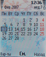 Дисплей:Выполнен он по технологии TFT, имеет разрешение 128*160 пикселей и отображает по заявлению производителя 65 000 цветов, хотя на самом деле цветопередача весьма посредственная. Физический размер экрана по отношению к размеру телефона довольно немаленький, если точнее, то его размер составляет 29*35 миллиметров. Углы обзора достаточно велики, и изображения неплохо смотрятся под любым наклоном, аналогично можно сказать и про поведение экрана на солнце – изображение остается вполне приемлемым. Самое негативное в дисплее – это его зернистость, большое расстояние между пикселями портит все впечатление от изображения.