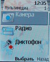 Мультимедиа и развлечения:Для воспроизведения мультимедийных файлов в телефоне присутствуют 2 проигрывателя, один для видео, второй для аудио файлов. К сожалению, малый объем памяти не позволяет использовать телефон как мр3 плеер, но этот недостаток компенсирует присутствие стерео FM радио, которое можно прослушивать как через гарнитуру, так и через динамик телефона, причем в обоих случаях громкость на высоте. Диктофон позволяет делать записи продолжительностью до пяти минут, но он не работает во время разговора. Также телефон поддерживает Java приложения, изначально в телефоне предустановленно 2 игры, но они медлительные и не интересные.