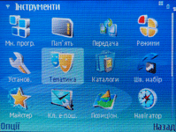 Дисплей:Экран данного аппарата, по телефонным меркам, представляет собой целое футбольное поле. И не удивительно, ведь он имеет разрешение 320*240 точек, а при способности отображать до 16 млн. цветов телефон можно использовать в качестве портативного кинотеатра. Да и проблема углов просмотра не сильно себя проявляет, так что можно устраивать кинозал. Во время работы на экране отображается рабочий стол с иконками быстрого запуска. А если ничего не будет видно, то можно увеличить яркость – ведь это единственная доступная пользователю опция. Но при уменьшении внешнего освещения телефон сам начнет регулировать яркость дисплея, благодаря световому датчику над экраном.