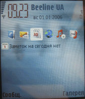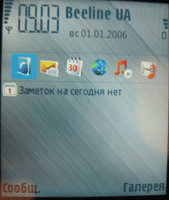 Работает сие устройство на операционной системе Symbian 9.1 что влечет за собой беспрепятственную работу со всевозможными офисными файлами и приложениями. Скорость работы ОС не особо велика, но и медленной ее назвать сложно, скорость ее работы стандартна для смартфонов подобного уровня. В аппарате есть 3 возможных меню, первое – это стандартный рабочий стол с необходимым минимумом доступных приложений, если разбирать конкретней то выйдет следующая картина – записная книга, сообщения, календарь, связь (доступ к Интернету), мультимедиа плеер и галерея. Второй тип меню – стандартный, он состоит из 12-ти пунктов в которых можно найти все необходимый файлы и настройки. Третье – это мультимедийное меню состоящее из пяти пунктов (Слайды, радио, плеер, связь и настройки), каждый из которых закреплен за отдельным движением джойстика, первые 4-е пункта можно изменять и назначать на различные значения.