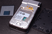 КорпусГлавное нововведение аппарата коснулось именно корпуса – телефон не просто похудел, он фактически просвечивается. Внешняя сторона верхней половинки выполнена из пластмассы с зеркальным покрытием, поэтому девушки могут пудрить носик не отходя от кассы, или разговора с подружкой – кому что ближе. А просвечивается в нем внешний экран, размещенный под зеркалом. Однако царапины не заставят себя ждать – зеркало является идеальной для них поверхностью. Форм-фактор корпуса данного девайса также не поддается определению – то ли это раскладушка, то ли книжечка. Но вот качество сборки корпуса не в пример лучше. Как говорится, есть за что деньги платить (и деньги немалые) – все детали плотно подогнагы друг к другу и потому никаких люфтов и скрипов не возникло. Заглушки плотно входят в свои гнезда и надежные фиксаторы блокируют самопроизвольное открывание. Да и потерять их будет проблематично, по крайней мере случайно . Задняя крышка держится тоже просто отлично – надежная кнопка в стиле Nokia удерживает ее и надежно фиксирует.