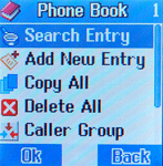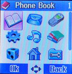 Меню:Количество пунктов в меню телефона превышает жизненную необходимость при такой функциональности. Как бы то ни было, а в телефоне размещается 12 пунктов меню: 1. Телефонная книга – более удобный аналог бумажного варианта. Адресная книга:Данный телефон не рассчитан на работу с большим количеством учетных записей. Поэтому память его телефонной книги ограничили объемом в 200 номеров, которые при необходимость дополняются ресурсами SIM карты(примерно 180 номеров). Но при этом каждой записи можно присвоить имя, имя компании, адрес E-mail, офисный телефонный номер, номер факса, отсортировать по группам. А для идентификации абонента можно использовать картинку и мелодию, которые можно присвоить на каждый номер.