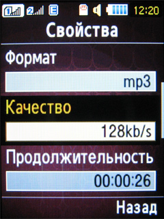 С эфира можно делать запись, сохраняя аудиоконтент в память трубки или на карту расширения в MP3-формате с битрейтом 128 Кб/с.