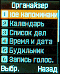 Сообщения и органайзер:Телефон способен обмениваться такими привычными SMS и MMS сообщениями. Память телефона способна вместить до 200 SMS сообщений. Количество же MMS ограничено свободной памятью. Из плюсов можно выделить возможность установки отдельной мелодии на каждый тип сообщения, для этих целей предлагаются лишь предустановленные производителем мелодии. Телефонная книга телефона ограничена объемом в 500 записей. Для одного имени можно записать до 4-ех номеров, адрес электронной почты и факс. К сожалению, присвоить фотографию или отдельную мелодию на каждого абонента не удастся.