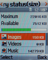 Память:В телефоне встроено около 20-ти mb памяти, но в случае ее нехватки можно воспользоваться картой памяти MicroSD размером до 1 Гб. Она динамически распределяется под нужды картинок, видео, мелодий и MMS. А для Java приложений выделено всего лишь 4 mb. К сожалению, отсутствует возможность передавать эти самые апплеты, но закачать их при помощи GPRS или EDGE можно всегда и в любое время.