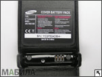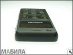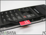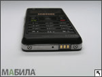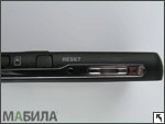 На нижней грани телефона, находятся три контакта для взаимодействия с чехлом, которым комплектуется устройство, точно как и модели Samsung P300/P310, и в который встроен дополнительный аккумулятор. Поскольку телефон не позволяет заменить или вынимать аккумулятор, гнездо для SIM-карты, которое обычно находится под батареей, вынесли на правую сторону. Получился разъем, прикрытый пластиковой сдвижной панелью. Менять SIM-карту желательно при выключенном телефоне, но даже если вытянуть ее в рабочем состоянии, сбоя не произойдет — устройство просто перезагрузится. Над разъемом для SIM-карт расположено маленькое круглое отверстие, как, например, в карманных компьютерах. В этом отверстии прячется кнопка принудительной перезагрузки, что очень полезно при каких-либо сбоях. В самом верху находится сдвоенная клавиша регулировки громкости, она же отвечает за передвижение в меню, где это возможно.