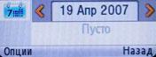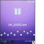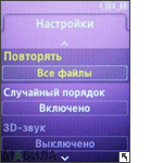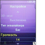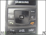 С противоположной стороны снизу вверх идут: клавиша Hold, отвечающая за блокировку органов управления, клавиша переключения между дисплеями и два разъема — для карт памяти MicroSD и системный, к которому подключается зарядное устройство, пульт гарнитуры или дата-кабель. Максимальный объем карт памяти не может превышать два гигабайта. Как это не парадоксально, но главный дисплей меньше чем дополнительный. Нас приучили к тому, что основные функции требуют более качественного дисплея для их полноценного отображения. В компании Samsung решили пойти иным путем и, мало того, что оснастили моноблочную конструкцию двумя дисплеями, так еще и поменяли их местами. С одной стороны это вызывает определенные неудобства, к которым, впрочем, со временем привыкаешь, а с другой — позволяет увеличить продолжительность работы телефона благодаря меньшему расходу энергии на подсветку дисплея. Размеры основного дисплея устройства составляют 1,5 дюйма, а его разрешение — 176х65 точек. Дополнительный (мультимедийный) дисплей имеет диагональ 2 дюйма при разрешении 176х220 точек и поддерживает 262 тысячи цветов. Его время подсветки и яркость регулируются в соответствующем меню настроек. Привычный пункт «Заставка», здесь отсутствует в принципе, поскольку на основном дисплее все равно нет достаточно места, а на мультимедийном может отображаться только стандартный бордовый фон. Там же настраивается подсветка цифровых клавиш. Подсветка сенсорного блока управления на задней панели не регулируется по времени, частично из-за того чтобы не происходили случайные срабатывания сенсоров, пока они активны, а частично потому, что в их более длительной подсветке нет надобности. На солнце, информация на обоих дисплеях остается читаемой, несмотря на довольно заметную потерю яркости. Главное меню и интерфейсУчитывая уникальность F300, об устройстве нельзя сказать, что первый блин получился комом, и все же без недостатков здесь не обошлось. Давайте задумаемся, что могло подтолкнуть производителя к такому необычному решению, как моноблок с двумя дисплеями. Сказать что работа с основным дисплеем ущербная — значит солгать, однако, часто ловишь себя на мысли, что все можно было реализовать гораздо качественнее. Как мы уже говорили, главная, на наш взгляд, цель, которой пытались достичь инженеры Samsung, это увеличение продолжительности работы. Вторая цель — доказать, что такой функционал возможен при таких размерах и вполне может стать основой для следующих поколений аппаратов. Если использовать F300 только для телефонных функций, его заряда хватит более чем на неделю (с использованием дополнительного аккумулятора в чехле). Но ведь аппарат был создан не только для этого, да и его призвание — радовать мелодичным звучанием, а не эстетичной красотой. То есть, работа с основным дисплеем должна составлять лишь небольшую часть по отношению к общему времени использования телефона. Ведь входящие сообщения, мультимедийные файлы можно просматривать на втором дисплее, а основным пользоваться только для совершения звонков. Значит экономия на самом деле не такая уж большая. Собственно в сухом остатке остается только плацдарм для следующих поколений. Главное меню телефона представляет собой 9 иконок, привычных для поклонников этой торговой марки. На дисплее вмещается пять пунктов меню распо