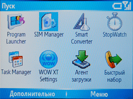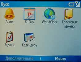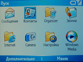 Меню:Меню телефона представлено кнопкой Пуск. Это меню позволяет быстро добраться до самых необходимых пользователю программ (их можно выбрать из предлагаемого списка), там же расположены недавно запускавшиеся программы. Далее идут два пункта: настройки и программы. Пункт «Настройки» позволяет настроить смартфон по своему вкусу, а пункт «Программы» откроет доступ к телефонии и предустановленным программам. Для управления можно также использовать свой голос. Правда придется долго возиться с настройкой этой возможности.