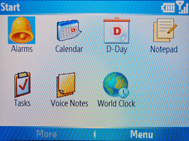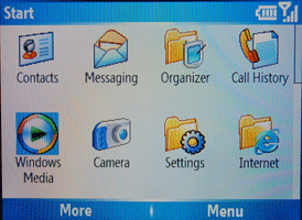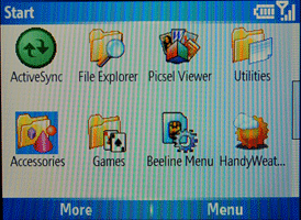 МенюМеню выполнено вполне традиционно для смартофонов на базе Windows, даже иконки напоминают об одноименной ОС. Создавать свои пункты можно просто копируя нужную программу в папку главного меню. Но вряд ли это придется делать часто, так как каждая установленная программа создает свой пункт. Тем не менее, меню по умолчанию состоит из 20 пунктов: