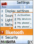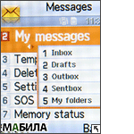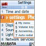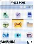 Меню у аппарата стандартное для этого бренда — перемещение по пунктам осуществляется с помощью навигационной и цифровых клавиш. Цветные иконки, выполненные в виде матрицы 3х3, знакомы нам из подавляющего числа современных телефонов. В меню телефона есть и интересная особенность. При наведении курсора на один из пунктов меню отображаются и все его подпункты.