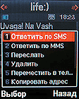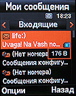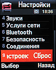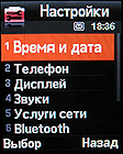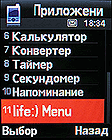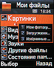 МенюПрограммно телефон аналогичен последним моделям компании. Главное меню состоит из девяти разделов и может отображаться в виде иконок или списком. В последнем случае при выборе желаемого поля в правой части экрана открывается выпадающее подменю — сокращенный список пунктов раздела. Перемещение осуществляется с помощью навигационного центра. Так же, как и в предыдущих моделях, навигация и сортировка разделов меню на свое усмотрение в этом аппарате невозможны.