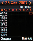 В адресную книгу помещается до тысячи абонентов, каждому можно присвоить собственные картинку, мелодию звонка, поместить его в определенную группу. Кстати, отдельную мелодию можно закрепить и за группой контактов, при этом если на одного абонента назначено два звонка (группы и личный), при входящем вызове превалирующим будет личный сигнал.Есть функция быстрого набора номеров, максимальное их количество равно восьми, причем на разные кнопки можно запрограммировать разные номера одного и того же контакта. Память аппарата позволяет сохранять до ста событий каждого из трех типов: «встреча», «годовщина», «задание». Для каждой записи указываются дата и время начала и окончания события, а также место его проведения. Есть возможность установить напоминание с интервалом срабатывания. Календарь просматривается по месяцам и по неделям. В телефоне около двадцати мегабайт встроенной памяти, но в случае ее нехватки можно воспользоваться картой памяти MicroSD объемом до одного гигабайта. Она динамически распределяется на все типы файлов — картинки, видео, мелодии и сообщения. Для Java-приложений доступно всего четыре мегабайта — этого явно недостаточно.
