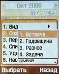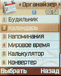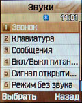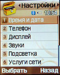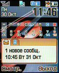 Меню телефона выполнено во всех традициях корейского производителя. Уже достаточно обкатанный дизайн (а речь идет о платформе SWIFT) успел себя зарекомендовать в аппаратах типа D500 и D600. Главное меню выполнено в виде матрицы 3x3, причем каждый значок при выборе соответствующего пункта "оживает". Меню работает шустро, никаких тормозов не замечено. Приятно порадовала возможность быстрого перехода к любому подпункту, набрав цифру, соответствующую его порядковому номеру. Например, чтобы быстро включить/выключить Bluetooth, нужно в главном меню нажать поочередную комбинацию кнопок 361 + клавиша ОК.