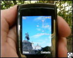 Обзор мобильного телефона Samsung SGH-E950Samsung SGH-E950 – имиджевая модель телефона, поступившая в массовую продажу в сентябре 2007 г. Аппарат выполнен в форм-факторе слайдера, снабжен обычной цифровой клавиатурой и оригинальной сенсорной функциональной. Устройство работает в сетях GSM 900/1800/1900 и поддерживает технологию EDGE. Телефон оснащен множеством мультимедийных и коммуникационных функций, в том числе TV-выходом и камерой на 3 Мп. ![]() Корпус и дизайн Компактный корпус аппарата выполнен из пластика и легкого металлического сплава. Из последнего сделаны крышка аккумуляторного отсека и большая часть торцевой окантовки слайд-панели. Ход слайд-панели – четкий, уверенный. Усилие, которое нужно приложить для ее отодвигания, не назовешь чрезмерным, но и случайно это сделать сложно. Крышка аккумуляторного отсека открывается в направлении, противоположном открытию слайдера, так что ее тоже нельзя сдвинуть, слишком сильно сжав телефон при открывании. (Может показаться, что последний пункт не стоит упоминания, однако я видел телефоны, в которых это не было продумано.) В открытом состоянии у панелей нет свободного хода, и это делает работу с телефоном достаточно комфортной. ![]() ![]() На верхней стороне слайд-панели находится дисплей, динамик и сенсорная навигационная клавиатура, на нижней – объектив камеры, вспышка и мини-зеркальце для автопортретов. В закрытом состоянии они оказываются спрятанными между панелями. На правом торце находятся выпуклая кнопка включения режима камеры (она же спускает затвор) и кнопка включения аппарата, не выступающая за габариты торца. Слева разместилась двойная навигационная кнопка "вверх/вниз", закрытый разъем для подключения гарнитуры, дата-кабеля или зарядного устройства и отверстие для шнурка или брелока. На лицевой стороне нижней панели находится стандартная 12-кнопочная цифровая клавиатура, на тыльной – внешний динамик. Клавиатура В первом приближении создается впечатление, что в реализации функциональной клавиатуры борются оригинальность и удобство. Действительно, поначалу нелегко приноровиться к сенсорным кнопкам, нажатия на которые не ощущаешь. Впрочем, это быстро проходит. Сенсорная клавиатура включает в себя прямоугольную панель (OLED-дисплей), которая может быть пятипозиционным курсором или набором горячих клавиш, кнопки вызова и сброса и две функциональные клавиши. Функции горячих клавиш пользователь, как водится, может переназначить самостоятельно. На нижней панели телефона находится стандартная добротно сделанная цифровая клавиатура. Кнопки выполнены из черного гладкого пластика. Ход кнопок – короткий и четкий, неудобств во время набора возникнуть не должно. Экран E950 оснащен цветным TFT LCD дисплеем диагональю 2'', отображающим 262 тыс. цветов. Разрешение экрана составляет 240х320 точек. Имеется также 5 степеней регулировки яркости.