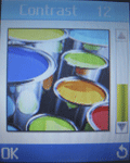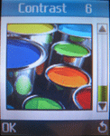 Дисплей:Телефон оборудован ЖК-экраном, размером 128х160 пикселей, который способен отображать 65000 оттенков. Согласно документации тип экран выполнен по технологии TFT, но вот по качеству изображения это явно слегка устаревшая матрица STN. И ведь действительно, углы обзора невелики: достаточно положить его на стол в раскрытом состоянии и наблюдать смазывание цветов. Но для телефона такого типа это очень даже неплохо. Правда не хватает второго экрана, но если этот телефон использовать, как модный аксессуар, то он лишь помешает. Экран можно разделить на три части: в верхней части отображается уровень сигнала, заряд аккумулятора и сервисные иконки(приход SMS, профиль работы телефона и т.д.), внизу находятся иконки софт-клавиш, ну а посередке – фон рабочего стола. При входе в меню в верхней части появляется название пункта, среднюю часть занимают сами пункты меню, а внизу расположена информация, что с этими пунктами можно делать. Приятно удивила возможность регулировки времени гашения подсветки вплоть до 10 минут. А возможность изменения яркости и контраста позволят настроить экран под себя. К счастью или сожалению, но заставка отсутствует напрочь. А вот обои на рабочий стол можно установить только из списка предложенных, а именно: 8 картинок, аналоговые и цифровые часы, календарь и пустой рабочий стол. Также можно выбрать какого цвета будет текст на рабочем столе и нужно ли отображать его.