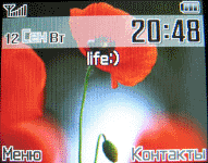 Цветной дисплей (262 тыс. цветов) имеет разрешение 220х176 точек (35х28 мм, 1,9 дюйма). Качество экрана просто превосходное, на солнце он вообще не слепнет, картинка насыщенная. Ориентация экрана горизонтальная (альбомная), поэтому на нем очень удобно смотреть видео. Довольно комфортно на телефоне читать тексты, да и вообще работать с любой другой информацией. Это один из самых лучших и ярких дисплеев для мобильных телефонов на сегодняшний день. Так как дисплей телефона это одна из самых хрупких и подверженных механическим поломкам частей мобилки, то для обеспечения дополнительной безопасности на него установили защитное прозрачное покрытие из твердого пластика и усиливающую рамку.
