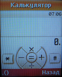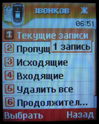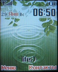 Производителю удалось создать унисекс модель, при различных цветовых оформлениях корпуса – целевая аудитория может быть кардинально разная. Телефон удобно располагается в руке, а матовое покрытие задней части телефона не дает ему выскользнуть С раскладушкой удобно работать, она без проблем открывается одной рукой, для этого сделано специальное углубление между половинками корпуса. Экран:Внутренний экран – самое слабое место аппарата. Производитель явно продешевил, оснастив модель среднего класса дисплеем который применялся еще в телефонах прошлых годов. Здесь мы имеем UFB-дисплей с разрешением 128х160 точек, (при физических размерах 21х33 мм) и при этом отображающий 65536 цветов и оттенков. Дисплей особым качеством не блещет, цвета передаются неплохо, но неестественно. Расстояние между пикселями существенное, из-за чего картинка получается зернистая. Зато на солнце картинка остается приемлемого качества, цвета выгорают, но не сильно. Радует возможность настройки, как яркости, так и контрастности экрана.