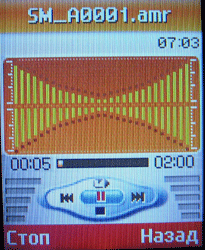Мультимедиа:В телефон можно закачивать картинки, и делать их фоном рабочего стола, также мелодии, и присваивать их абонентам в адресной книге, и для этого доступно 8 Мб памяти, которые также делятся на фото и видео.