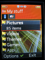 Камеры:Так уж исторически сложилось что в аппаратах для сетей 3его поколения устанавливают 2 камеры, одна из которых выполняет развлекательные функции, в смысле ею можно снимать все что движется и даже не движется, как в прочем и любой другой камерой :) , а вторая передает изображение во время видео звонков. Установленная на задней панели 2х мегапиксельная камера позволяет делать снимки весьма неплохого качества, порой она может даже заменить цифровую мыльницу. Максимальное разрешение снимков этой камеры 1600*1200, также можно фотографировать и с меньшим разрешением. При съемке есть возможность использования 7ми кратного цифрового зума. Полученные снимки как на экране телефона так и на дисплее компьютера выглядят неплохо и вполне пригодны для распечатки их на фото-принтере, для чего кстати и имеется в телефоне технология PictBridge – возможность отправки фотографий непосредственно с телефона на совместимый принтер. Камера установленная на передней панели предназначена в первую очередь для видеозвонков, но также ею можно делать обычные снимки, максимальное разрешение – CIF (352*286) Видео съемка возможна обеими камерами, причем в обоих случаях разрешение составляет 176*144 пикселей. Качество видео также приятно удивило, картинка четкая, без рывков. Меню:Меню представлено 12ю анимированными иконками, каждая из которых начинает изменяться когда на нее направлен курсор. Если разобраться что означает каждая из них то выйдет следующая картина: