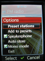 Радио:Установленный в телефоне радио приемник порадовал качеством приема, волна не теряется даже при большой скорости движения. Радио имеет свой собственный индикатор приема, и позволяет вносить в память до 10 станций, каждая из которых бронируется за определенной цифровой клавишей. Функция RDS позволяет просматривать текстовую информацию, передаваемую станциями