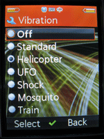 Персонализации:Пользователь может изменять помимо стандартных мелодий звонка и фоновой картинки, цветовые схемы, типы вибрации при поступивших вызовах, всего их установлено 6, а также иконки главного меню.