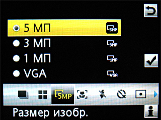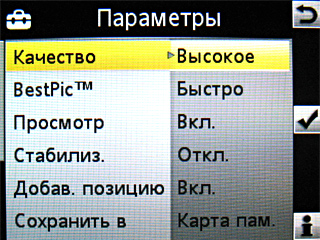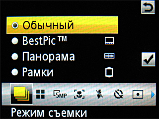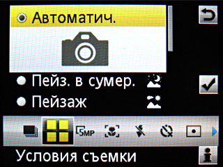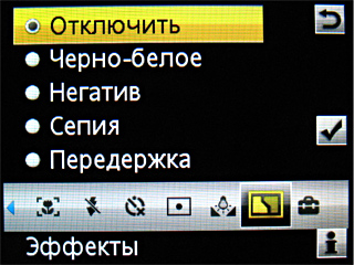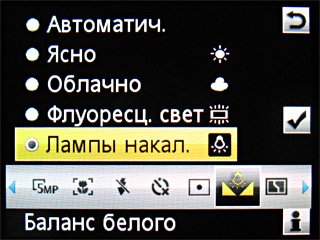 баланс белого, включение/отключение вспышки, выбор одной из стандартных