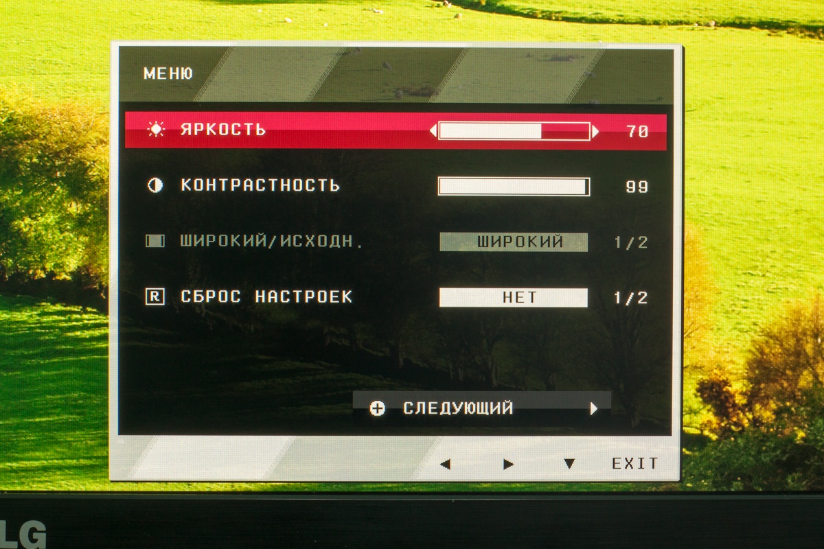 Но главные функциональные возможности пользователя ожидают в подменю «Следующий». Здесь есть подпункт «Картинка», где можно всячески регулировать четкость, выбрать уровень черного, а также включить овердрайв и пр. Из подменю «Цвет» доступна возможность регулировки гаммы, цветовой температуры, а также оттенка и насыщенности.