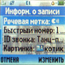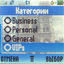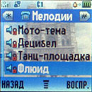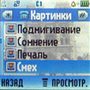 В папке «Картинки» можно просмотреть и изменить (переименовать, удалить, назначить в качестве обоев, переслать) файлы в форматах GIF (включая анимацию), Jpeg, BMP, EMS, PNG; что интересно, картинки можно просматривать по категориям, как записи в телефонной книге. В папке «Звуки» содержатся мелодии в формате MIDI и IMY (монофонические iMelody). Производитель заявляет поддержку мелодий в формате MP3, хотя и с низким битрейтом – всего 64 Кбит/с, а также WAV и AMR. К сожалению, соответствующая информация появилась уже после проведения тестирования, поэтому проверить работу телефона с MP3 не удалось.