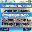 Раздел Последние вызовы по традиции состоит из двух нестандартных списков по 10 элементов – «Принятые вызовы» (сюда же входят пропущенные) и «Исходящие вызовы» (успешные и нет). Из режима ожидания вызывается последний список, а не общий. Ошибка с повторяющимися записями в списке осталась. Списки неудобны, к ним нужно привыкать. Раздел Сообщения содержит папки (входящие, исходящие, черновики), в которые заносятся сообщения разных типов – SMS, EMS, MMS, отличающиеся значками. Есть отдельные папки для Push-, голосовых и информационных сообщений, 10 шаблонов для SMS и папка шаблонов MMS. (Разработчик заявляет функцию email, но обнаружить ее не удалось).