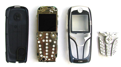 Как и у большинство новых моделей Motorola, дизайн C380 выполнен в модном современном ключе: матовые черные и серебристые панели, плавные округлые линии, полупрозрачный пластик, эффектно светящийся в темноте. (Существует также темно-синяя разновидность, но наблюдать ее пока не приходилось.) На мой субъективный взгляд, дизайн телефона заслуживает только положительной оценки, особенно если сравнивать его с грубоватым дизайном предыдущих телефонов Motorola серии “C”. Однако стоит взять аппарат в руки, как ощущение стиля улетучивается: пластик очень тонкий и ненадежный, кнопки клавиатуры люфтуют, корпус поскрипывает в руке и т.п. Низкое качество корпуса – неизбежная плата за полностью разборную конструкцию: обе панели корпуса и клавиатура могут быть заменены пользователем самостоятельно.