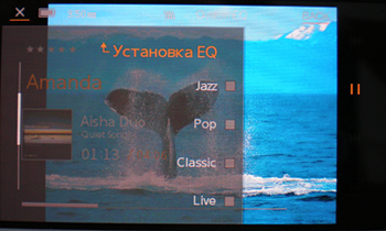 Необычность навигационной клавиши выражается в том, что это не привычный джойстик, а вращающийся цилиндрик с кнопкой подтверждения выбора на торце. С помощью этого занятного манипулятора можно перемещаться по меню, запуская выбранный пункт нажатием кнопки сверху. Довольно удобно. ![]() Рядом находятся две пластиковых клавиши (блокировки и возврата), выделяющиеся и визуально, и тактильно, а также щель микрофона. Похожие клавиши есть и на левом ребре — они служат для регулировки громкости и включения/выключения устройства. Снизу два разъёма — для подключения USB-кабеля (под заглушкой), и для стандартных наушников (без заглушки). Внешнего динамика нет. ![]() ![]() Тыльная сторона плеера изготовлена из того же материала, что и клавиши. Сюда вынесли лишь скромненькую «дырочку» Reset. На фоне многочисленных надписей эта кроха становится почти незаметна (хотя вряд ли обладателю Spinn придется пользоваться ею слишком часто...). ![]() Ещё одним необычным элементом оформления является наличие трёх шляпок болтов на боковых гранях — индустриальный стиль! Но в целом дизайн, конечно, на любителя. ![]() Возможности персонализации устройства можно было бы сделать и побогаче, хотя имеется и немало. Здесь можно установить дату и время, настроить эквалайзер пользователя из пяти дорожек, отрегулировать яркость экрана, задать альбомную или портретную ориентацию экрана, длительность подсветки, фоновую картинку, тип меню, язык, скорость прокрутки текста, вид музыкального браузера, включить или отключить «виброотдачу», выбрать тип отключения питания. Все установки можно сбросить одним движением. Чего не хватает? Ну, для просмотра текстовых файлов было бы неплохо ввести возможность настройки цвета символов. ![]() ![]() Меню плеера состоит из девяти пунктов. Пройдем в тот, что носит имя "Музыка". Здесь можно настроить режим воспроизведения - с повторами или без, всех треков или одного, по списку или в случайном порядке, выбрать один из восьми вариантов предустановок эквалайзера или выставить свои собственные, задать скорость сканирования и скорость воспроизведения. Во время проигрывания музыки можно воспользоваться выводящейся внизу экрана полосой прокрутки, чтобы перейти к любому месту трека. Ещё одна интересная возможность - воспроизведение отрезка трека — на упомянутой полосе можно указать как начальную, так и конечную точку, и выбранный кусочек будет играть по циклу. Сортировка треков ведётся по названиям, альбомам, исполнителям, жанрам. Кроме того можно создавать собственные списки воспроизведения, присваивая любой из композиций желаемое количество звёздочек (от 1 до 5). ![]() ![]() Слушать музыку приятно, звук чистый и насыщенный. Мощности хватит даже для того, чтобы перебить шум метрополитена - а это много стоит! Наушники - "затычки" хорошо держатся в ушной раковине и не демонстрирую склонности изображать Гордиев узел. Но в большей степени они меня поразили в качестве антенны для радио. ![]() Гарнитура исключительно хорошо справляется с этой функцией. С первого же раза при автонастройке нашлось 30 радиостанций, и лишь в трех или четырех случаях сигнал был несколько зашумлен. ![]() ![]() Списка каналов в привычном понимании здесь нет, каждая из станций отображается в виде звёздочки над линией радиочастот. Можно настроить регионы - Корея/США, Япония, Европа. Поиск каналов ос