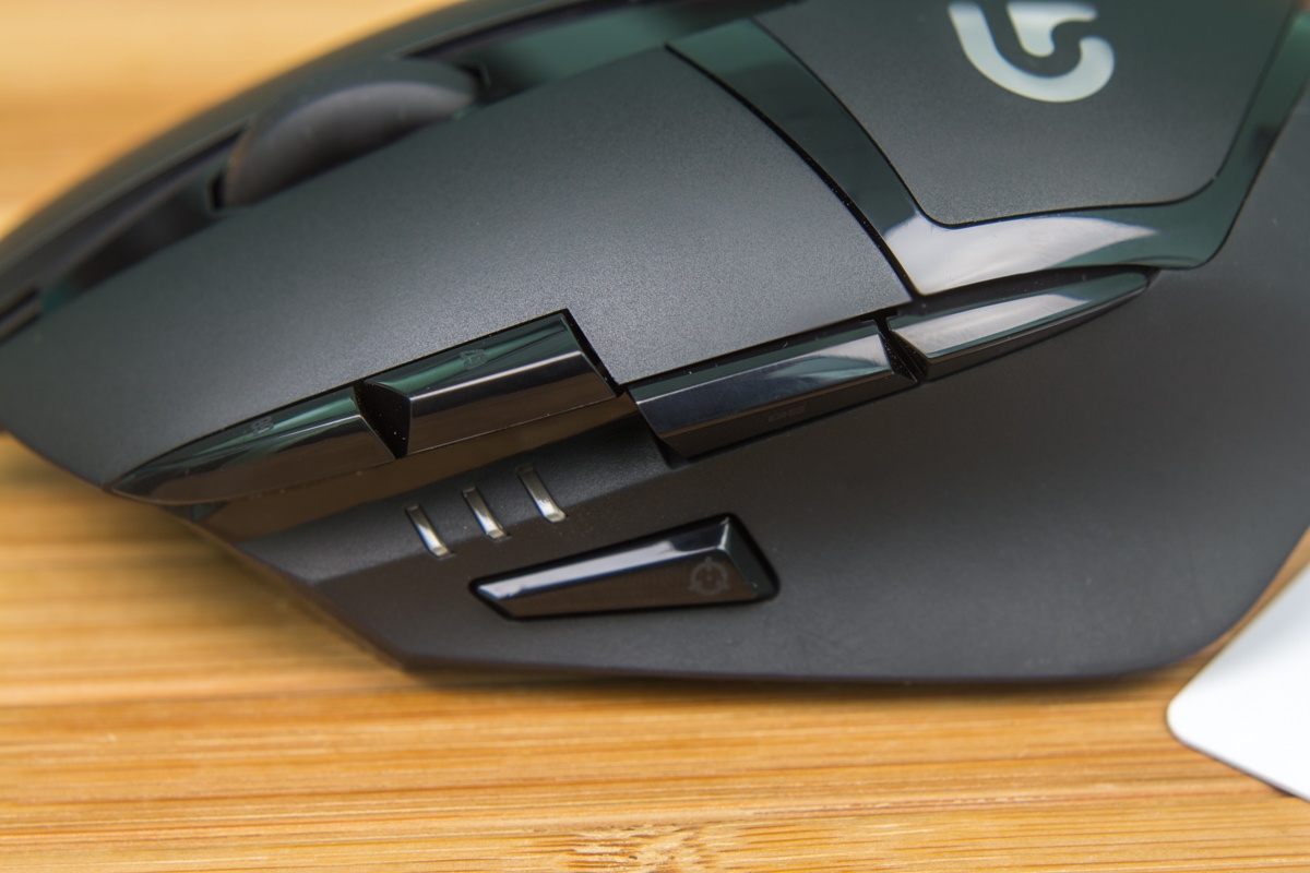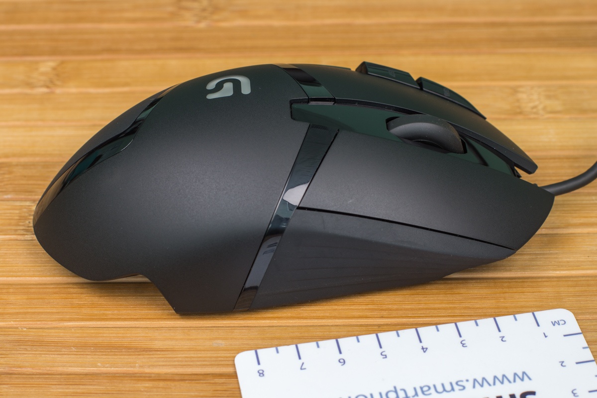Ключевой материал - матовый пластик, тогда как глянец скорее для дизайна.  Впрочем, из него также сделаны кнопки. Если пользователь положит руку на G402, большим пальцем и мизинцем он «нащупает» soft touch покрытие плюс небольшой рельеф. Последний предусмотрен для того, чтобы уменьшить скольжение.