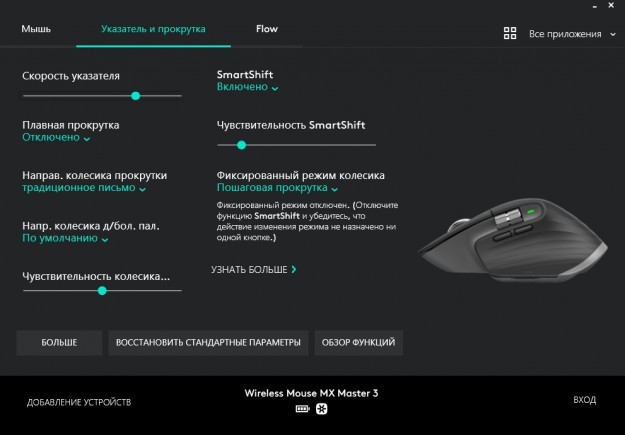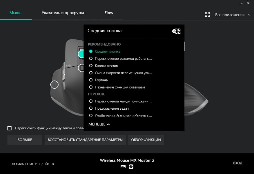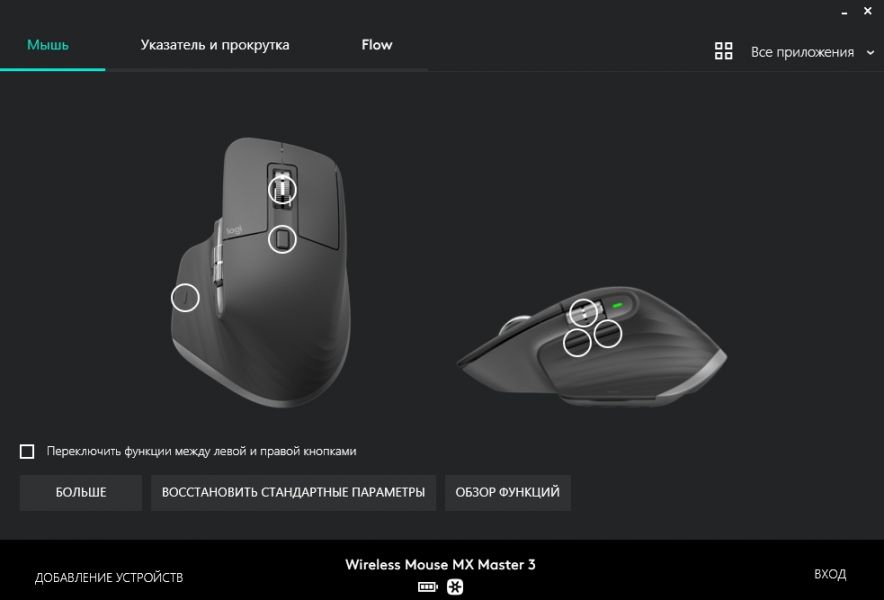 Подключение Одна мышка на три устройства. Переключение осуществляется кнопкой внизу. Зажали на три секунды и управляете устройством уже не на домашнем ноутбуке, а на рабочем, к которому заранее подключились по Bluetooth. Подвели курсор мыши к краю экрана и автоматически вас переключило на другое устройство. Таким способом можно передавать текст и файлы с любым разрешением. Копируем их на одном ноутбуке и вставляем на другом. Нюанс в том, что компьютеры должны быть подключены к одной Wi-Fi или Ethernet сети. Передача данных идет по протоколу SSL, с помощью алгоритма AES с 256-битным ключом шифрования. Надежно! Выводы Logitech MX Master 3 – лучшая мышка, к которой приходилось прикасаться моей руке. Честно! Ни тяжелая, ни легкая, с удобным расположением элементов управления и длительным временем автономной работы. Важны ли возможности по части настройки профилей приложений? Да, особенно если постоянно работаете со специализированным программным обеспечением. Найти недостатки в MX Master 3 сложно. Возможно, вас смутит цена, но вспомните, что вы платите за свой комфорт и увеличенную продуктивность.