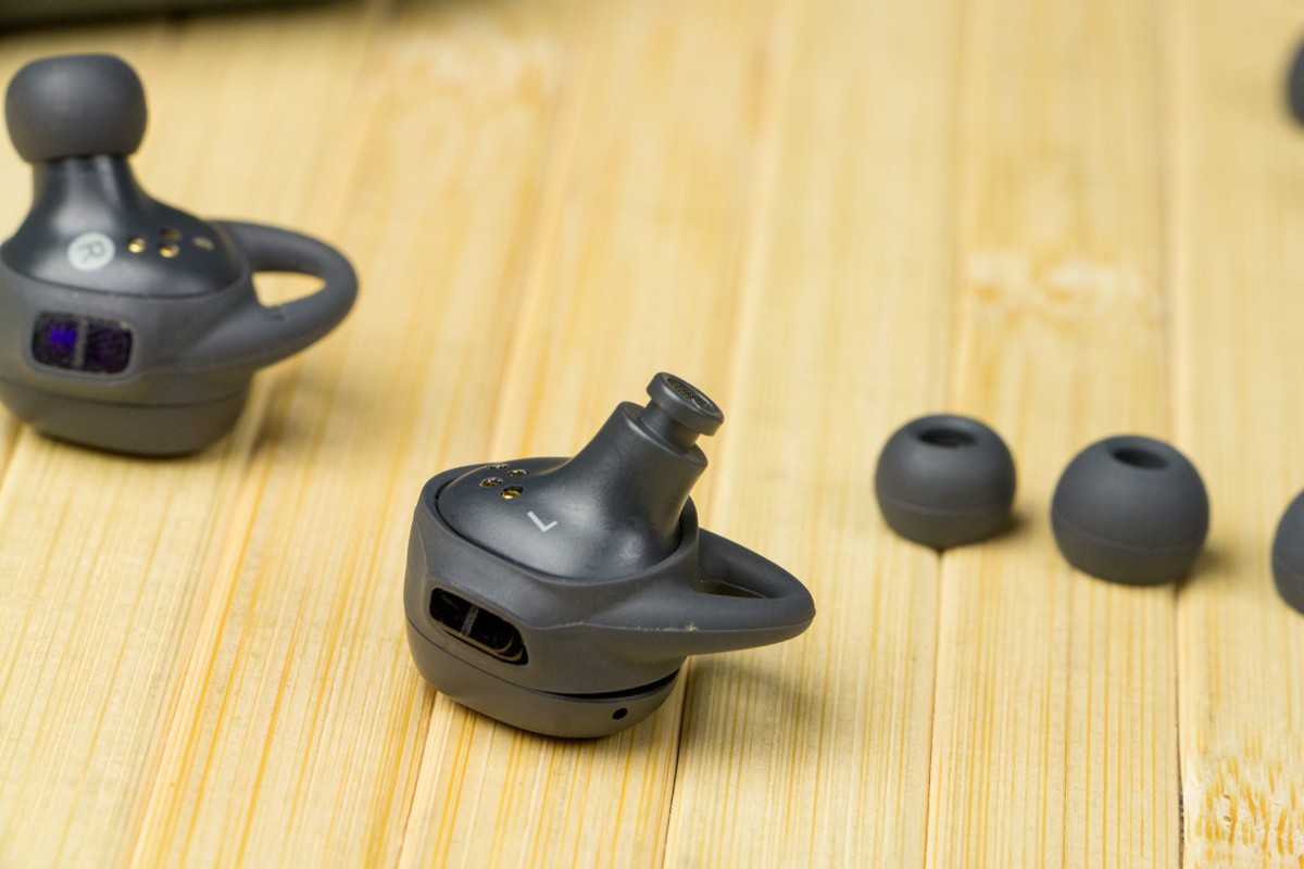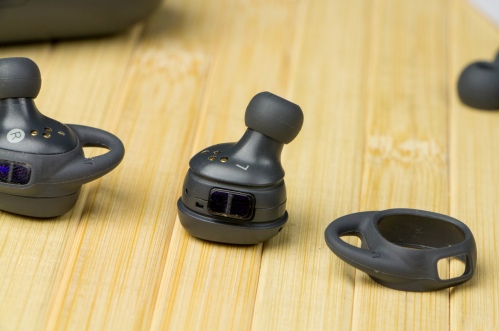 Обзор наушников Samsung Gear IconXРынок носимой электроники растет как на дрожжах. Производителей огромное количество, однако, когда речь заходит о качественных и надежных технологичных новинках, то чаще всего в голову приходит Samsung. Она, к примеру, первой из крупных компаний представила беспроводные внутриканальные фитнес-наушники Gear IconX со встроенной памятью, с детальным обзором которых мы и предлагаем вам ознакомиться. Комплект поставкиМогу поспорить, с такой комплектацией наушников вы ранее не встречались. Gear IconX помещены в компактный пластиковый чехол из прочного пластика в цвет гаджета черный/синий/белый, который помимо защитной функции выполняет роль зарядного устройства, так как оснащен собственным встроенным аккумулятором на 315 мАч. Подзарядка аксессуара осуществляется с помощью кабеля microUSB-USB, соответствующий разъем предусмотрен на тыльной части корпуса чехла рядом с индикатором заряда. Еще два светодиода, сигнализирующих об уровне заряда каждого из наушников, расположены на лицевой части слева и справа от кнопки открытия крышки, на которой выбит логотип компании-производителя. Внутри чехла пользовать найдет непосредственно сами наушники. Слот под правое и левое «ухо» подписан английскими буквами «R» и «L» соответственно. Буквенные обозначения нанесены и на сами наушники, так что проблемы с тем, какой из них куда класть, не возникало. Стоит обратить внимание и на то, что Gear IconX комплектуются тремя комплектами сменных амбушюр и таким же количеством резиновых ушных фиксаторов разных размеров. Так что какими бы не были ваши уши, подходящий вариант подобрать не составит труда. Дизайн и оснащениеНе могу сказать, что в дизайне Gear IconX есть что-то очень привлекательное, вместе с тем, они выглядят оригинально, так как кардинально отличаются от традиционных вакуумных наушников и формой, и размерами. Объясняется это, конечно же, их обширными возможностями и функционалом, но об этом позже. Сейчас же замечу, что несмотря на довольно внушительные, как для такого класса устройств, габариты и вес – 18.9 x 26.4 x 26.0 мм и 6.3 г, Gear IconX хорошо сидят в ушах. Да и было бы странно, если бы было по-другому, учитывая спортивную направленность тестируемого устройства. Корпус наушников изготовлен из пластика с нанопокрытием P2i, защищающим их от брызг воды. Резиновые только амбушюры и ушные фиксаторы. На каждом «ухе» находятся датчики, которые их активируют при соприкосновении с ушной раковиной пользователя, контакты для беспроводной зарядки, а также пульсометр, динамик, по два микрофона с системой шумоподавления и сенсорная панель для управления воспроизведением. Последняя обозначена тонким золотистым ободком. Кстати, учитывая маленькие размеры сенсорной площадки, к управлению Gear IconX пришлось некоторое время привыкать. Первые движения были не всегда точными. Внутреннее оснащение Gear IconX выглядит не менее впечатляюще. Каждый наушник получил аккумулятор на 47 мАч, акселерометр, 4 ГБ встроенной памяти и беспроводной модуль Bluetooth v4.1. Последний используется для подключения гаджета к мобильным устройствам, причем не только Samsung, но других производителей. Правда, при условии, что последние оснащены не меньше, чем 1.5 ГБ оперативной памяти и ОС Android версии 4.4 и выше. Возможно также подключение наушников к компьютеру на ОС Windows или OS X. Подключение, функционал и уд