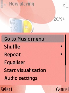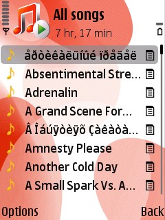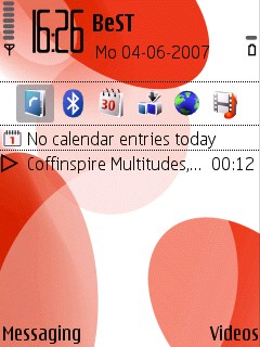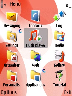 Рядом с заглушкой на правом торце установлено окошко ИК-порта. Его необходимость весьма сомнительна. В устройстве делового класса ИК-порт мог бы оказаться уместен из-за совместимости со старым оборудованием, но в передовом мультимедийном молодежном девайсе он кажется анахронизмом. При повороте нижней части в режим плеера можно увидеть отверстия стереодинамиков, расположенных на левом торце. Они прекрасно разнесены, воспроизводят хороший громкий стереозвук. Качество звучания субъективно можно назвать лучшим на рынке: даже на максимальной громкости не было слышно шума, треска или захлебывания динамиков независимо от характера проигрываемой композиции. МенюВ меню, помимо традиционных для S60v3 FP1 приложений и функций, можно найти программу для автоматического монтажа видео, улучшенный плеер и вынесенную из медиагалереи закладку «Видео». Браузер в отличие от такового в N76 не поддерживает пейзажный режим. В проигрывателе из фактических изменений можно отметить поддержку Album Arts и визуализации.