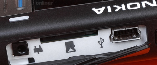 Гораздо более практичным решением является единая панель для разъемов. На правом торце под резиновой заглушкой установлены разъемы для ЗУ, карты памяти и USB-кабеля. Гнездо для штекера от наушников находится на нижнем торце. Это удобно, особенно если учесть, что рядом расположено крепление для шнурка. У входящих в комплект наушников штекер как раз прямой, а не в виде буквы «Г», что еще больше увеличивает удобство использования.