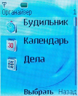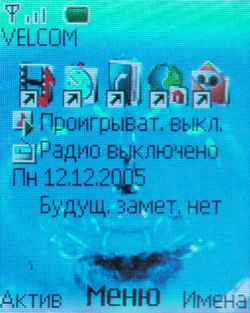 Тут стоит упомянуть и о таком преимуществе, которое делает телефон удобным с точки зрения «открыть/закрыть». Угол скоса нижнего края лицевой панели меньше, чем той же верхней. Это нисколько не портит вид, но очень эргономично. Выше расположился дисплей. TFT-матрица с разрешением в 120х160 точек – явно не идёт в ногу со временем. Цветопередача страдает характерными «завалами», изображение «зернит» и выглядит не естественно. Но, пожалуй, самым интересным минусом можно назвать присутствие эффекта «муар». В цифровой фотографии он появляется обычно при съёмке мелких сеток, тканей, структура которых представляет собой сетку и проч. На данном экране он появлялся, как правило, при взгляде на него с угла около 40-50 градусов. Природа такого явления состоит в том, что физические размеры экрана велики для такого разрешения, потому, так называемая «сегментация» видна не вооружённым глазом.