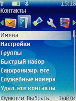 Дисплей также радует. Зерно очень маленькое, поэтому изображение выглядит гладким, углы обзора более чем достаточные. Черный цвет начинает портиться лишь при углах, близких к прямым, а белый слегка желтеет при средних отклонениях. Цвета сочные и яркие. Программный интерфейс и фотографии выглядят одинаково хорошо. Самое важное – дисплей и клавиатура – реализованы действительно качественно, без особых претензий. А дизайн – понятие субъективное и сугубо индивидуальное. Особых нареканий на расположение или функционирование других элементов корпуса нет. Меню и функцииВ Nokia 6233 представлена обновленная платформа Series 40. Она максимально приближена к Series 60 (смартфоны) внешне и функционально и обладает некоторыми неоспоримыми преимуществами. В первую очередь, это новый вид главного меню, так называемый Tabs («Вкладки»). В верхней части дисплея помещается пять иконок пунктов меню. Перемещение между пунктами автоматически открывает соответствующее подменю. Доступны также и классические варианты отображения меню телефона: иконки (можно с подписями) и список. Пиктограммы главного меню выглядят великолепно (кстати, в стиле S60). Все замечательно структурировано и интуитивно понятно. Некоторые подпункты для более удобного доступа продублированы. Например, синхронизация с ПК доступна и в меню контактов, и в меню сетевых подключений.