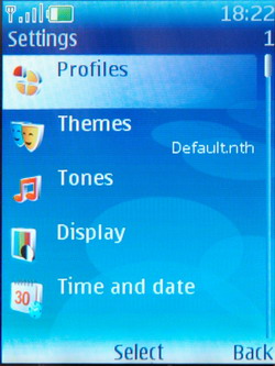 Стандартный пункт меню с настройками профилей, сигналов, дисплея, даты и времени, подключения устройств, вызовов, телефона и т.д. К новинкам относится выбор тем для оформления и настройки активного режима ожидания. При отключении активного режима ожидания на экран выводятся иконки камеры, SMS-сообщения, календаря и адресной книги. Добавились также настройки профиля Push to talk, присутствия и подписки. Новинкой стало также применение алгоритма улучшение качества речи.