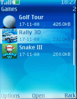 В телефоне установлено три игры - Golf Tour,Rally 3D,Snake III. Они специально переделаны под возросшее разрешение экрана. Запускаются без особых задержек по времени. Реализация графики очень хорошая. При входящем звонке игра прерывается, для продолжения требуется новый запуск. Используемая версия Java позволяет загружать приложения из сети и поддерживает 3D. Коллекция Калькулятор – достаточно функциональный, включает конвертор валют. Конвертор величин поддерживает режим изменения направления конверсии. В настройках можно добавить любой дополнительный тип преобразования. Мировое время. Настройки времени для четырех городов. Все обычно. Минск в списке городов отсутствует. Следующий пункт основного меню – Интернет