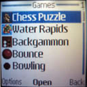 Крышка аккумуляторного отсека является своего рода контейнером для батареи. В этой модели используется стандартная литий-ионная батарея BL-5C емкость 850 mAh. Производитель обещает время разговора до 7 часов, работу в режиме ожидания – до 240 часов. Крепление SIM представляет собой пластиковый держатель, в который карта вставляется полностью. Возможность самопроизвольного высвобождения SIM-карты исключена. Снизу расположены разъемы для зарядного устройства и гарнитуры. В верхней части телефона имеется “ушко” для шнурка. Экран и КлавиатураЭкран представляет собой пассивную матрицу с поддержкой 4096 цветов, разрешением 128х128 точек, вмещающую 8 строк текста. Качество изображения довольно хорошее, но все же это как раз тот случай, когда в жизни экран производит менее благоприятное впечатление, чем на фотографиях. Регулировки контрастности практически не имеют применения, так как оптимальная читаемость приходится как раз на стандартные настройки. При максимальной контрастности на улице при солнечном свете экран заметно выцветает. Обычная “телефонная” клавиатура выполнена из пластика приличного качества. Клавиши среднего ряда имеют весьма ощутимый люфт. Навигация по меню осуществляется с помощью пятипозиционного джойстика. Люфт у джойстика также довольно большой. Справа и слева под экраном находятся софт-клавиши. Правая служит для входа в телефонную книгу. Левая открывает мини-меню, которое можно составить самому. Это функция очень удобна. Например, чтобы всякий раз не копаться в основном меню, можно составить список из разделов “Сообщения”, “Звонки”, “Календарь” и нескольких наиболее используемых режимов.
