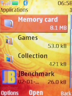 Как и недавно протестированные нами Nokia 7390 и Nokia 5200, данная модель основана на платформе S40 и имеет Feature Pack 2, поэтому необходимость подробно описывать программную составляющую отсутствует. Особенностью всей L’Amour-серии и Nokia 7373 в частности является богатый набор графики и звуков. Установленные приложения и игры аналогичны таковым в Nokia 7390: music guess, sudoku, sensor, конвертер размеров, мировое время. Их работа также уже рассматривалась. Заметим, что большая часть мультимедийного наполнения и приложений установлена на карте памяти, т.к. в памяти телефона свободно всего около 2 МБ. Результаты тестов Nokia 7373 характерны для обычного мультимедийного телефона.