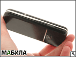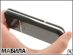 А вот к клавиатурному блоку, в особенности к цифровой части, никаких придирок нет. Сами по себе кнопки большие, достаточно широкие, к тому же устроены по интересной ступенчатой схеме, что уже в некоторой мере препятствует скольжению по глянцевым кнопкам. Да и говорить о соскальзывании пальцев здесь излишне, поскольку за недельный период тестирования мы с примерами подобного плана просто не встречались. С софт-блоком, а также джойстиком дела не так хороши, хотя, конечно же, не критичны. Клавиши софт блока покрыты специальным защитным стеклом, которое хотя и подчеркивает лишний раз эстетику всей модели, однако очень склонно к маранию. Многопозиционный джойстик проработан вполне обычно — никаких нареканий здесь не возникает, хотя и восторга тоже. Над экраном находится внутренний динамик, и датчик освещенности, а на правой боковой грани размещена небольшая прорезь, с плотно прилегающей к ней сеточкой. Это динамик громкой связи. Работа упомянутых элементов вполне нормальная.